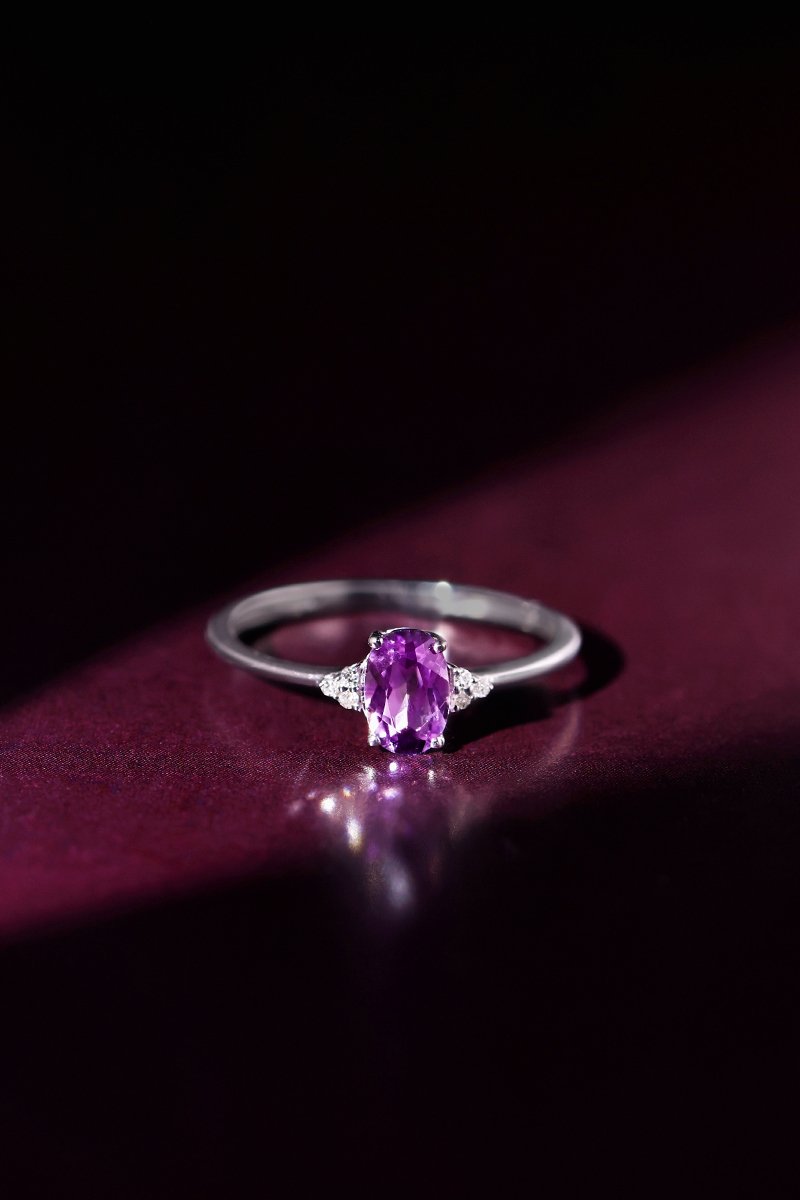 Anillo Mady - Oro blanco, diamantes y amatista