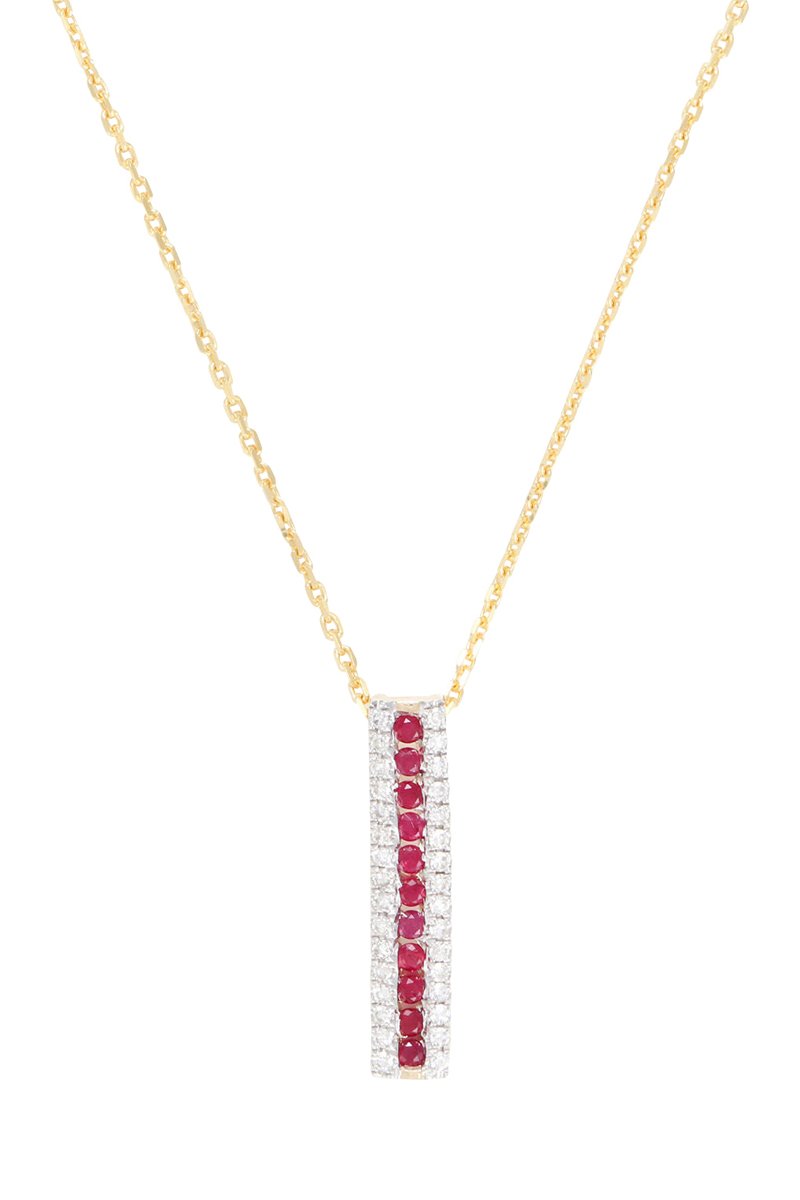 Colgante de oro amarillo con 32 diamantes y 11 rubíes.