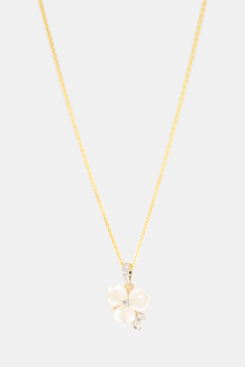 Colgante de oro amarillo con 12 diamantes y nácar.