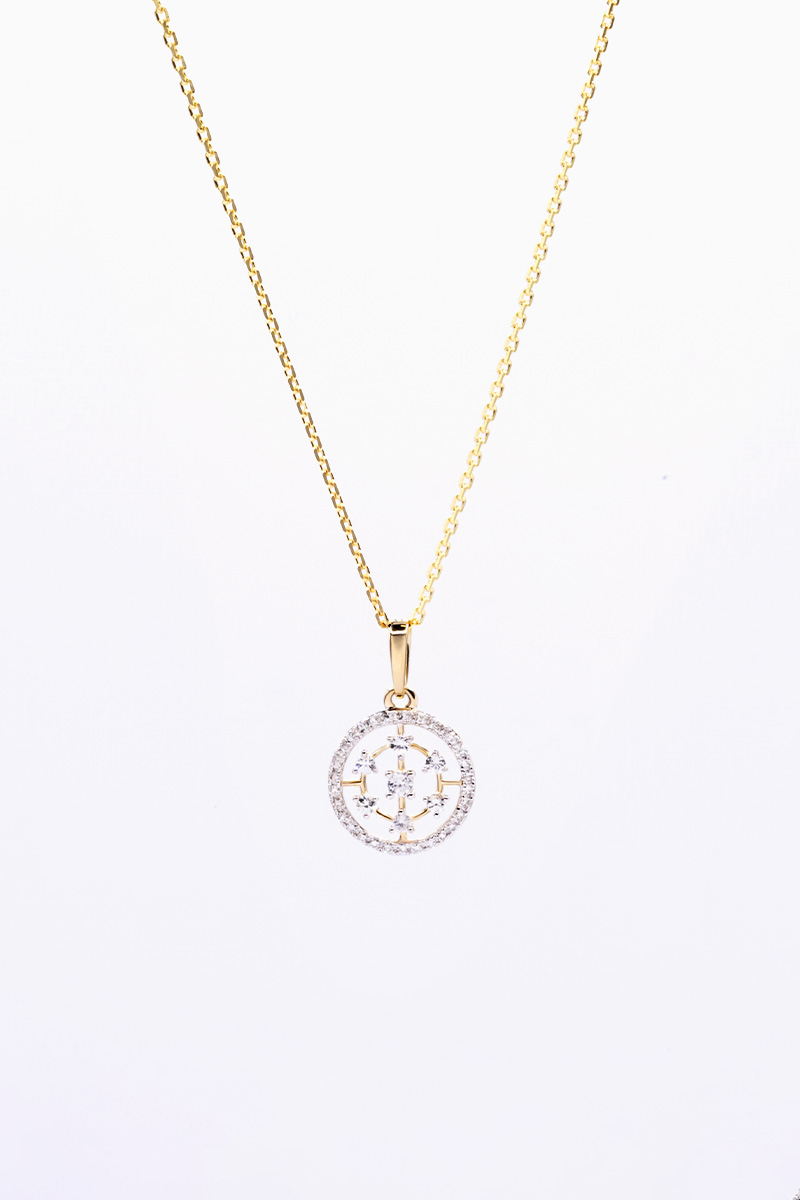 Colgante de oro amarillo con 30 diamantes y 7 zafiros.