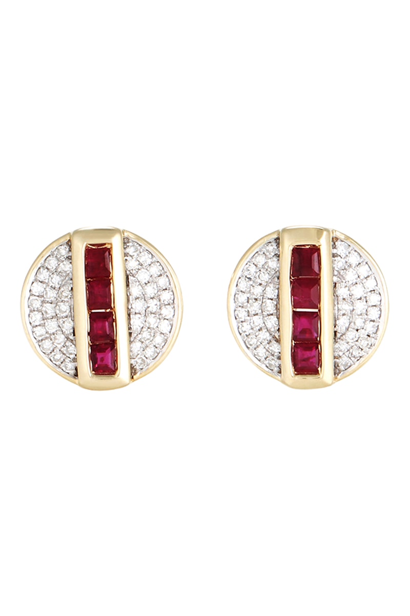 Dormilonas de oro amarillo con 80 diamantes y 8 rubíes.