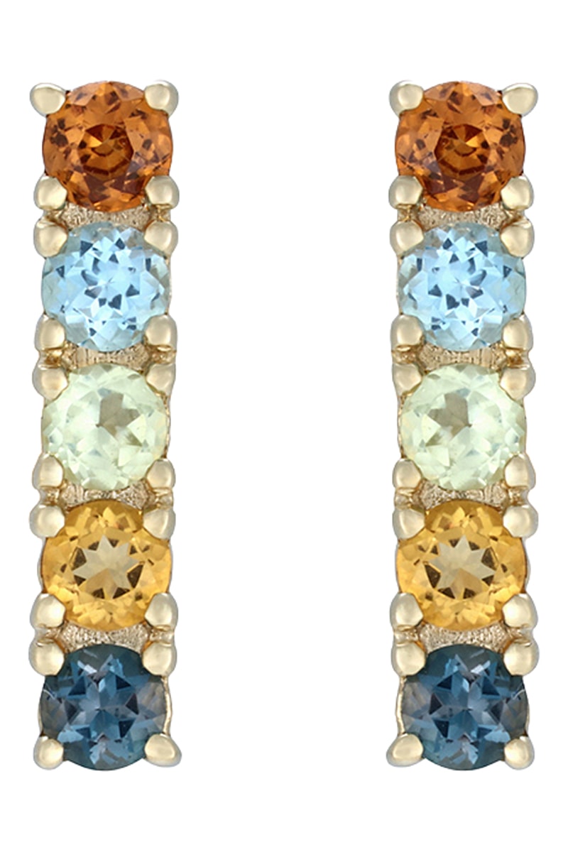Material: oro amarillo 375/1000, labradoritas de 0,08 quilates/2, topacios azules de 0,09 quilates/2, peridotos de 0,07 quilates/2, citrinos de 0,07 quilates/2 y hematitas de 0,09 quilates/2