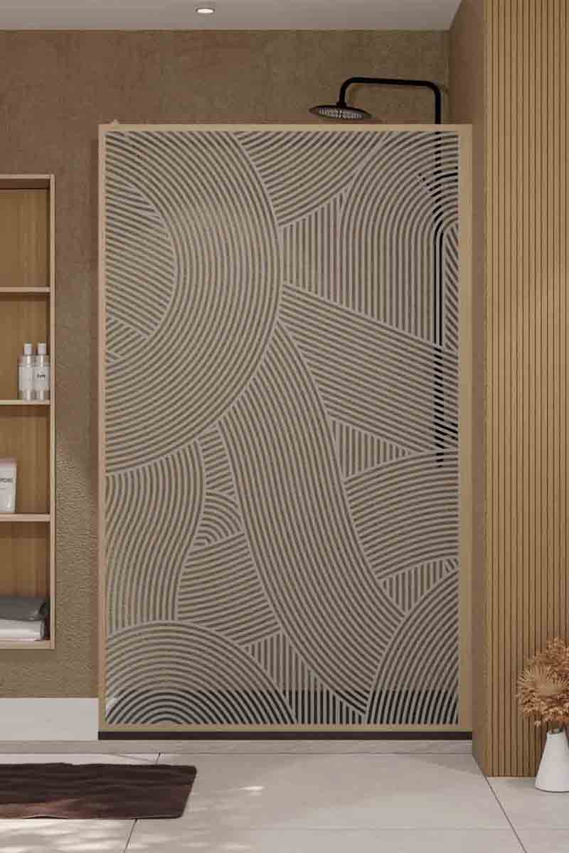 Transforma tu baño en un verdadero santuario con la mampara de ducha, diseñada para combinar elegancia y funcionalidad. El perfil de aluminio con acabado efecto madera aporta un toque de calidez y autenticidad, evocando la naturaleza en su estado más puro. Esta mampara de ducha con perfiles decorativos de madera serigrafiada no es solo un elemento de diseño, sino una invitación a un momento de relajación diario, envuelto en una atmósfera tanto relajante como sofisticada.