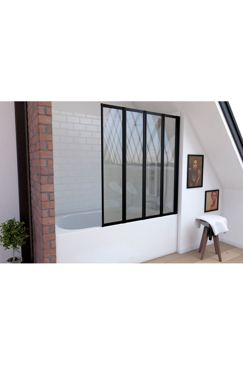 Mampara de bañera de 4 paneles giratorios.