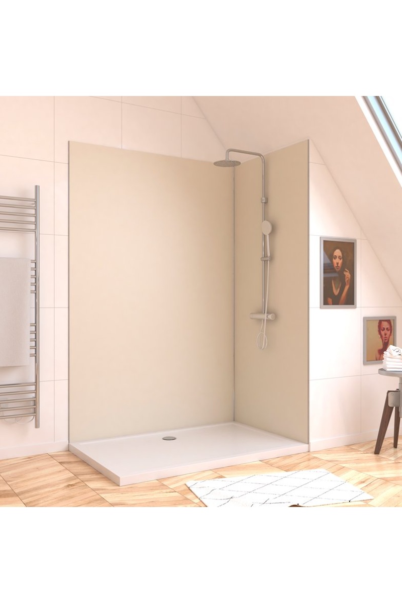 Los paneles de pared se pegan con masilla PU o silicona para garantizar el mantenimiento y la estanqueidad de tu ducha.