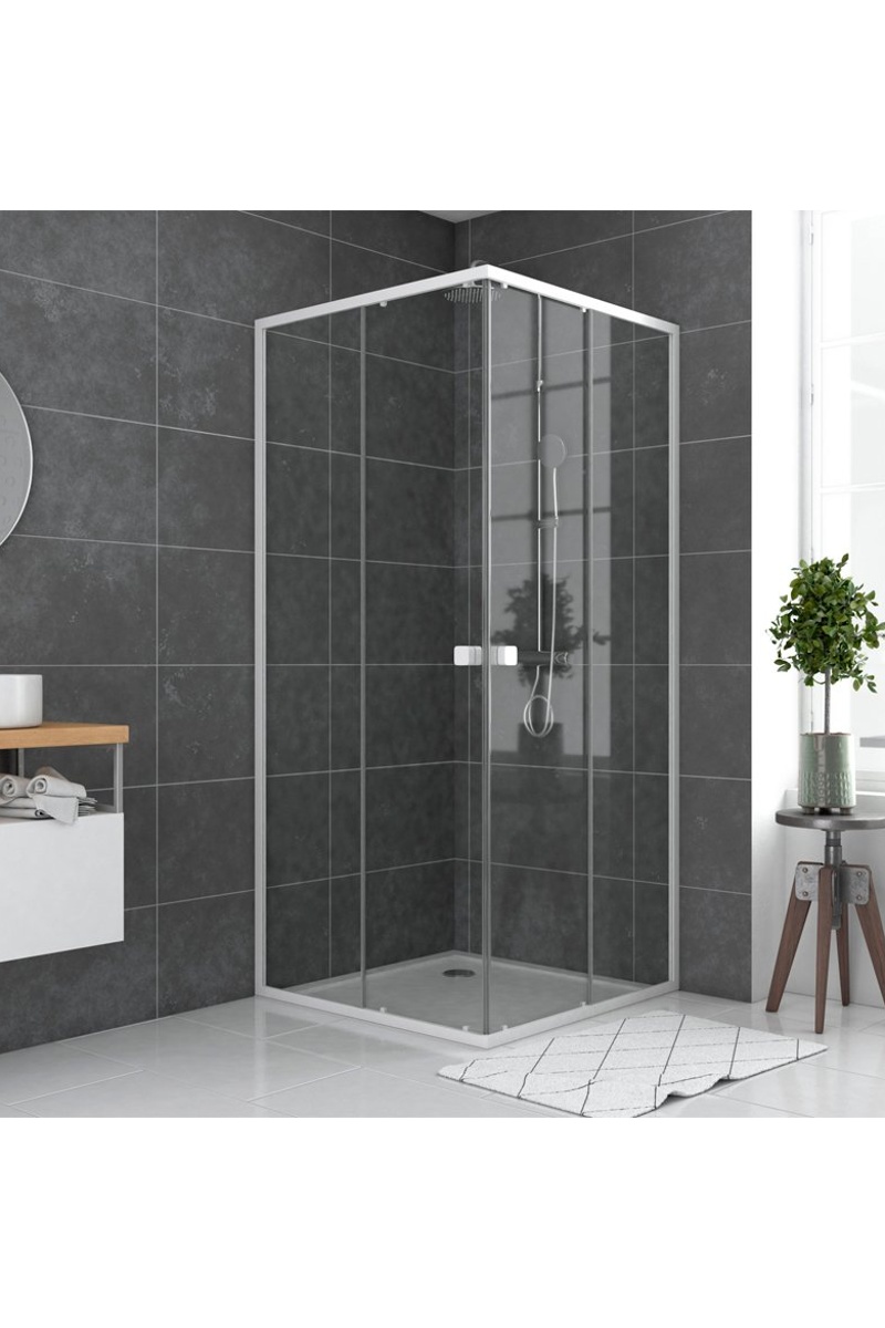 Mampara de ducha corredera - Blanco y transparente
