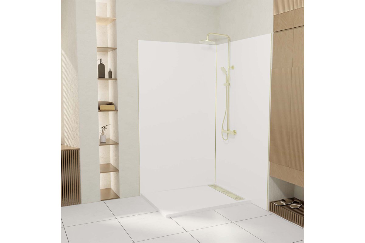 Consejos: Los paneles de pared se pegan con masilla PU o silicona para garantizar el mantenimiento y la estanqueidad de tu ducha.