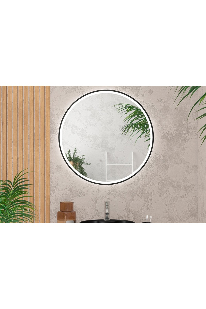 Espejo redondo de cuarto de baño con iluminación LED - Negro - 70 cm