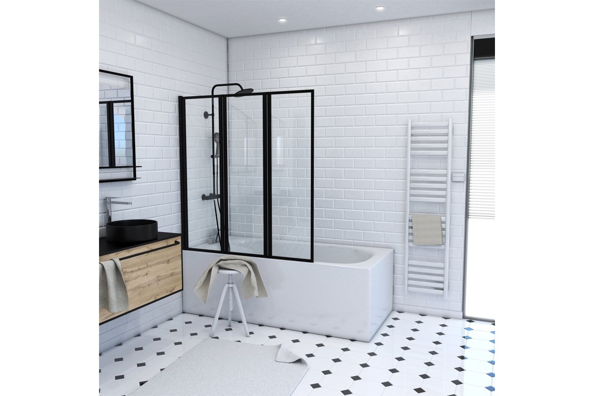 Mampara de bañera - Transparente y negro