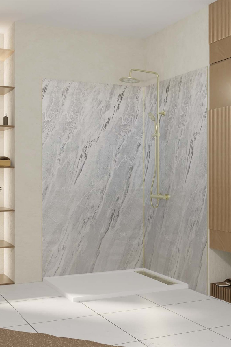 2 paneles murales de ducha STONE’IT - Gris - 120 x 210 cm y 90 x 210 cm