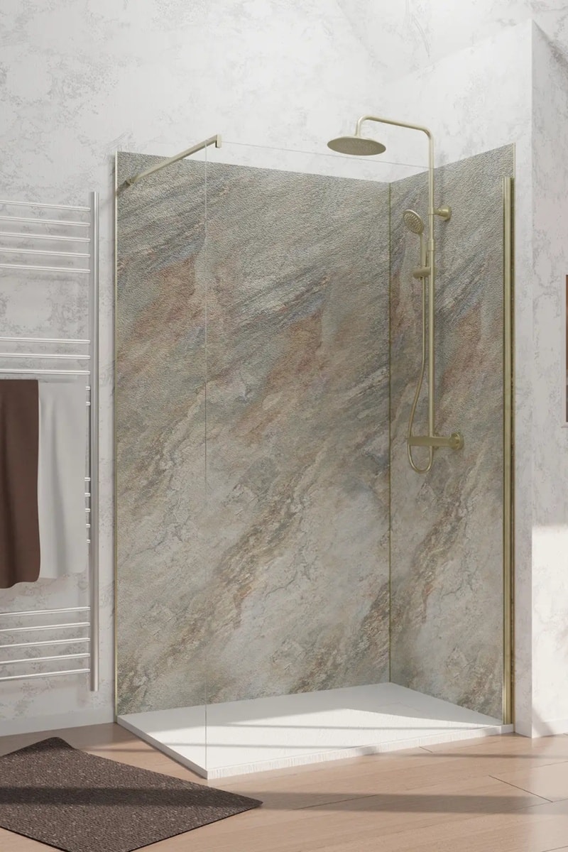 2 paneles murales de ducha STONE’IT - Gris - 120 x 210 cm y 90 x 210 cm