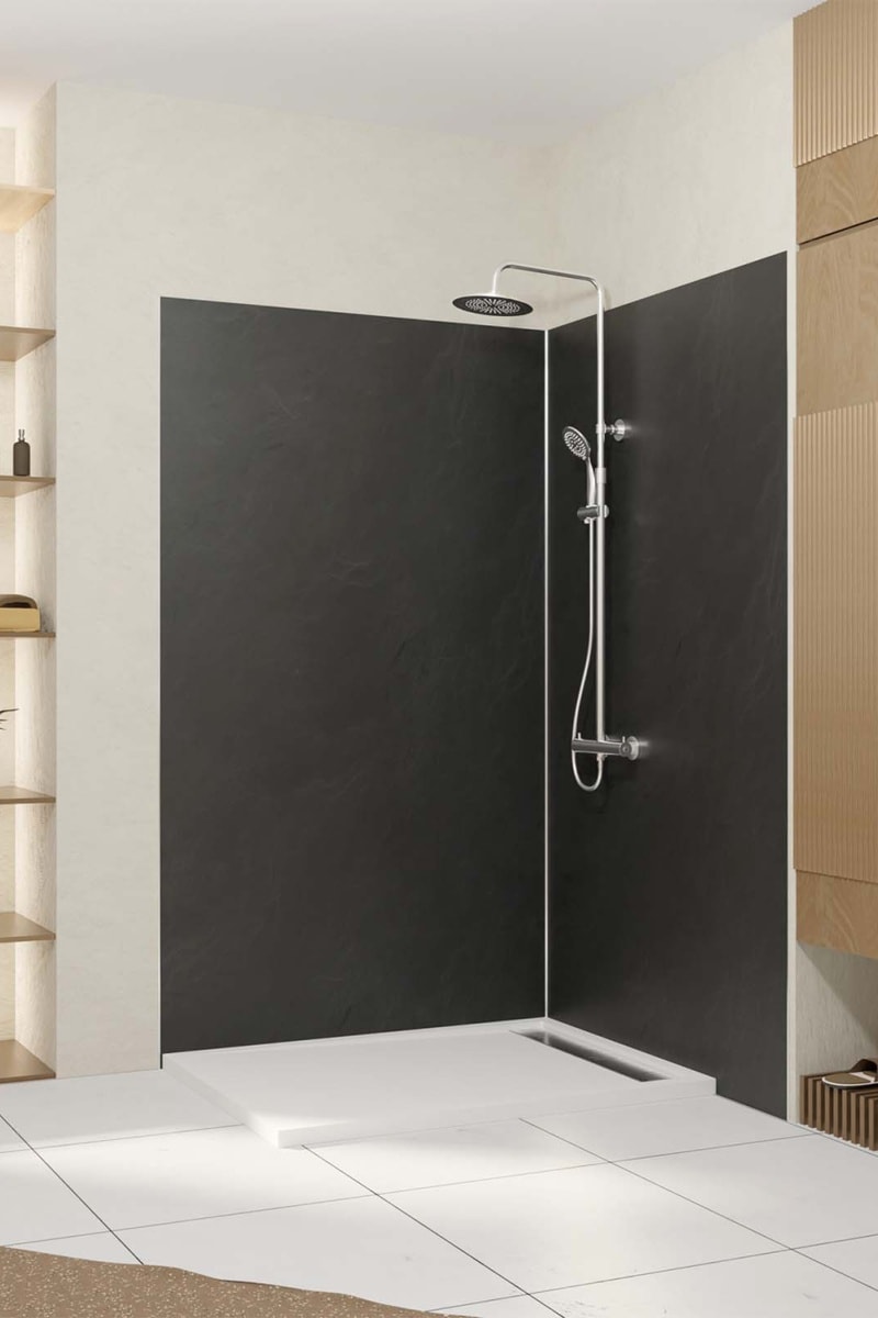 2 paneles murales de ducha STONE’IT - Negro - 120 x 210 cm y 90 x 210 cm