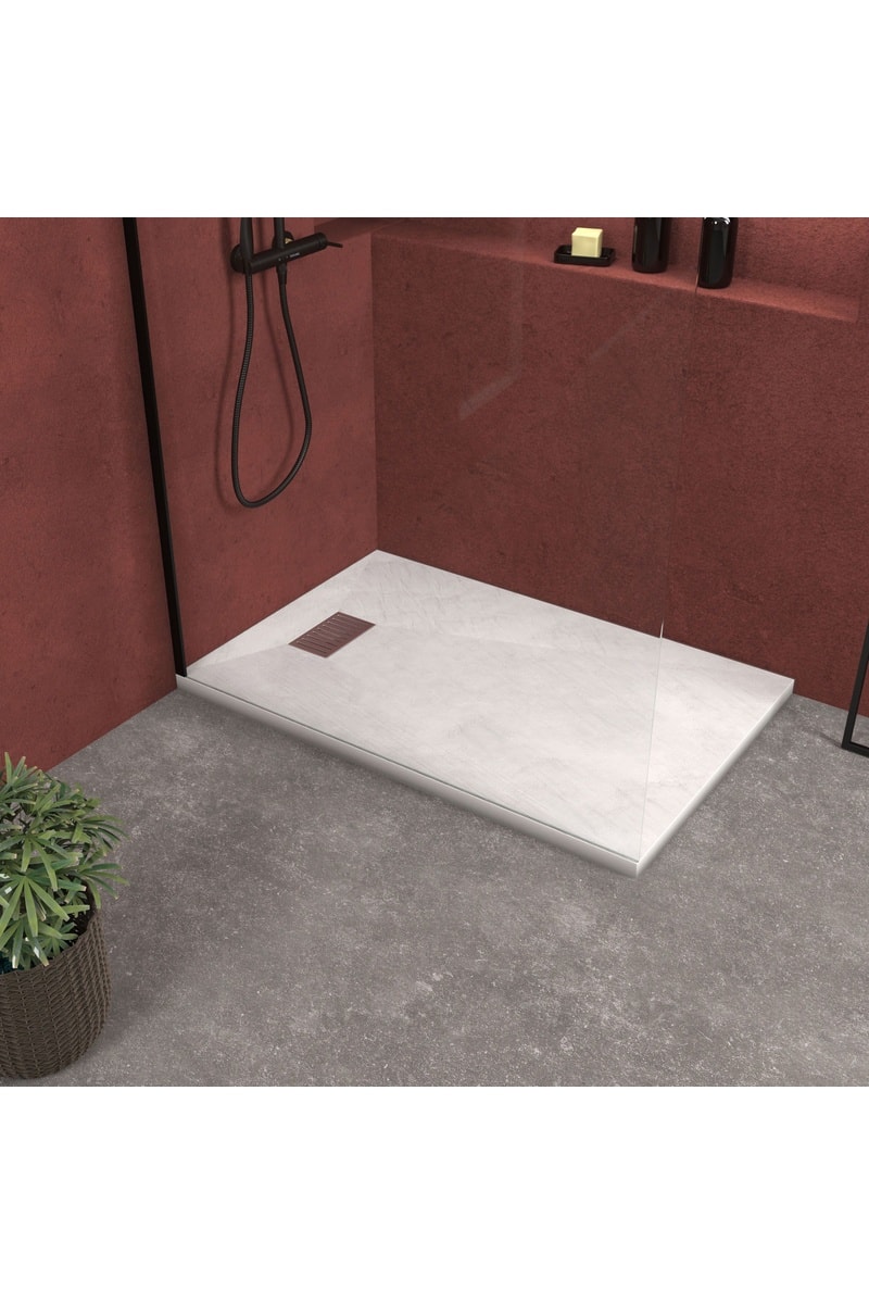 Plato de ducha: resina SMC (aleación de poliéster, cargas minerales, fibra de vidrio)