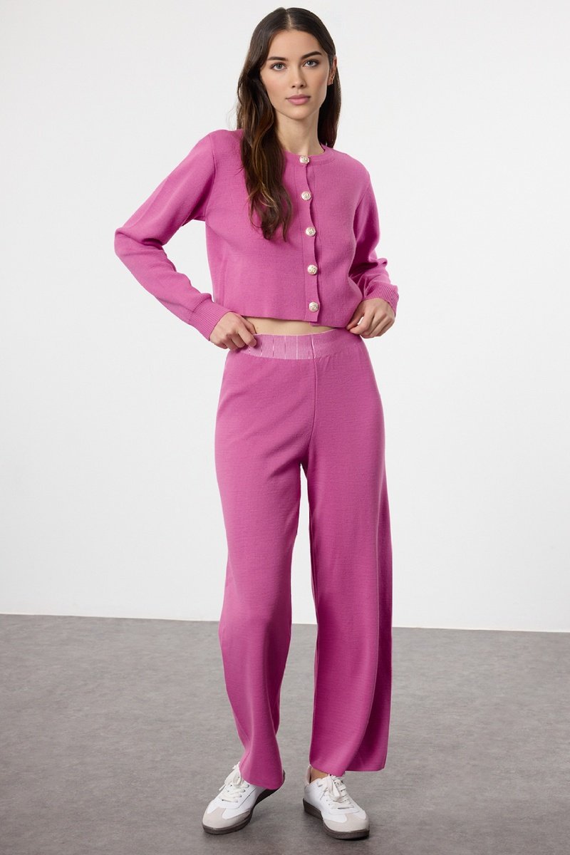 Cárdigan y pantalón regular fit de tiro alto -
