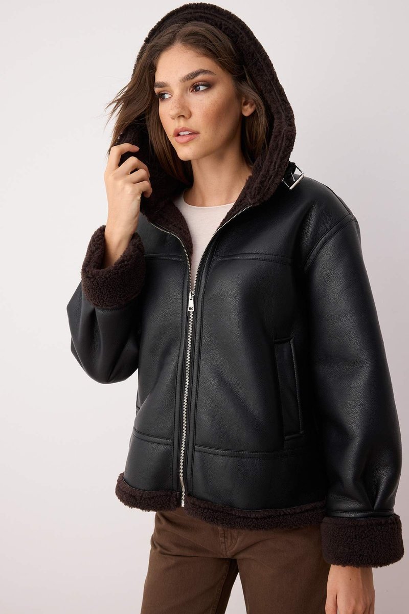 Detalles de pelo sintético en la capucha, en las mangas y en el bajo.