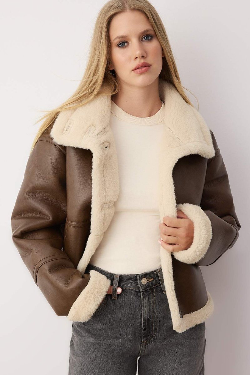 Pelo sintético en el cuello, en las mangas, delante y en el bajo.