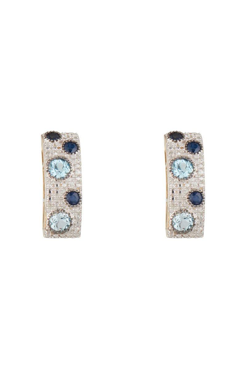 Pendientes de oro amarillo con 10 diamantes, 2 topacios y 3 zafiros.