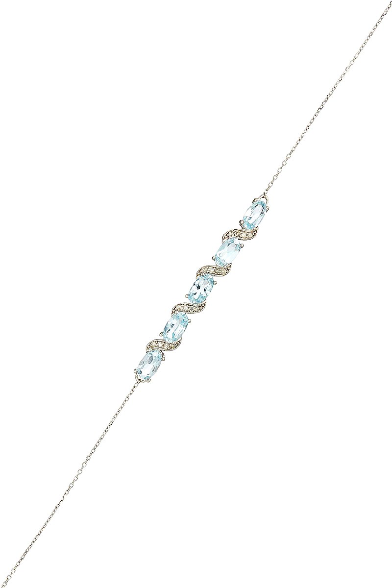 Pulsera de oro blanco con 16 diamantes y 5 topacios.