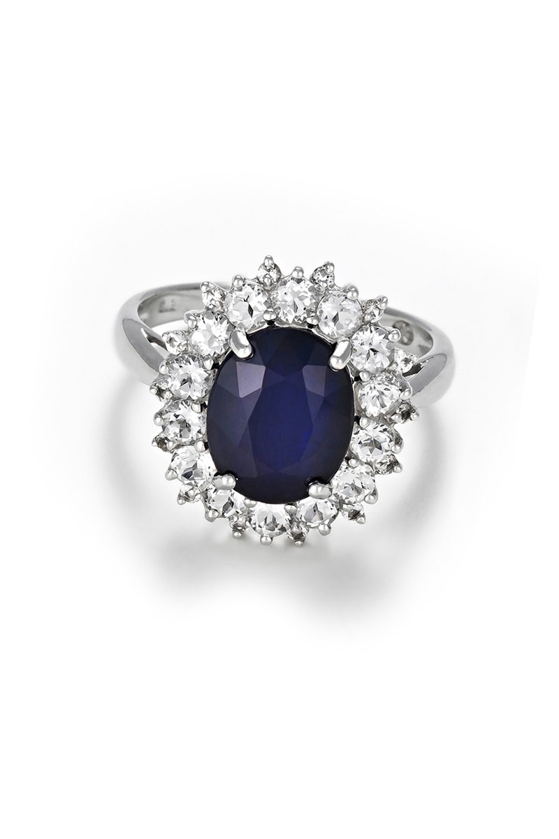 Material: oro blanco 375/1000, topacio y zafiro 4,83 quilates