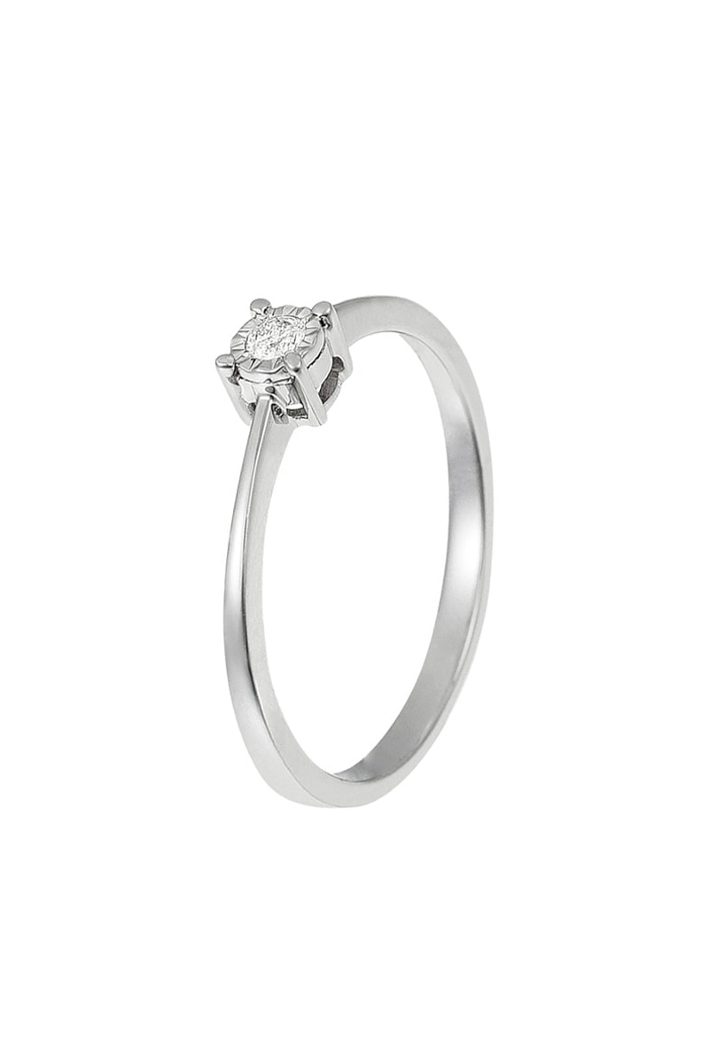 Solitario de oro blanco con un diamante.