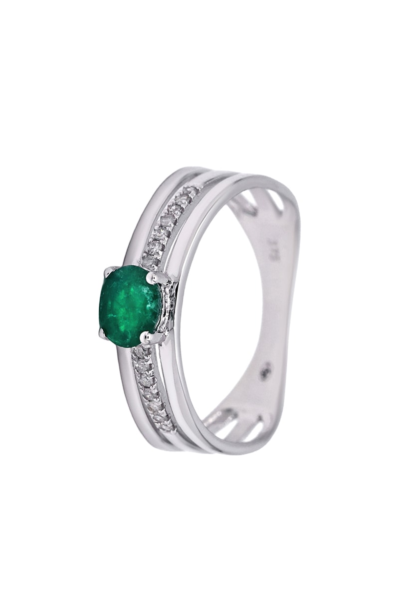 Material: oro blanco 375/1000, diamantes de 0,06/14 quilates y esmeralda de 0,38/1 quilates
