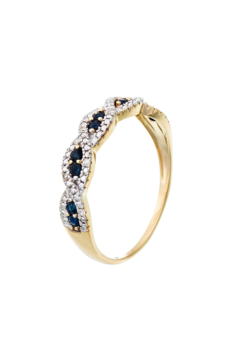Anillo de oro amarillo con 14 diamantes y 10 zafiros.