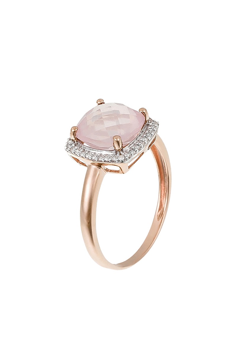 Anillo de oro rosa con 36 diamantes y un cuarzo.