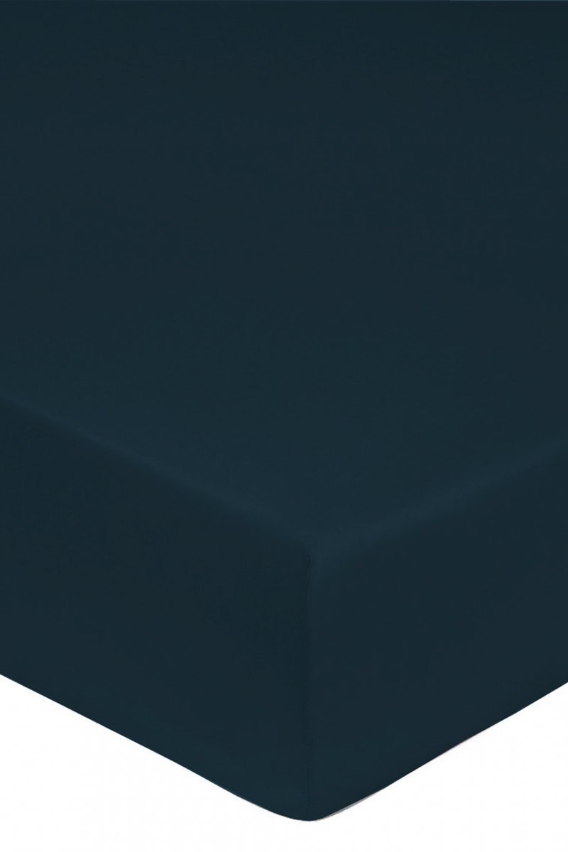 Sábana bajera de satén de algodón 80 hilos/cm² - Azul marino