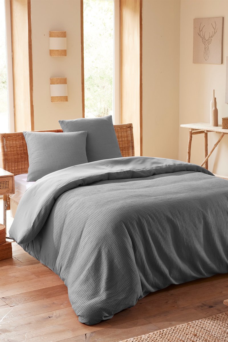 Juego de nórdico de algodón nido de abeja 57 hilos/cm² - Pizarra
