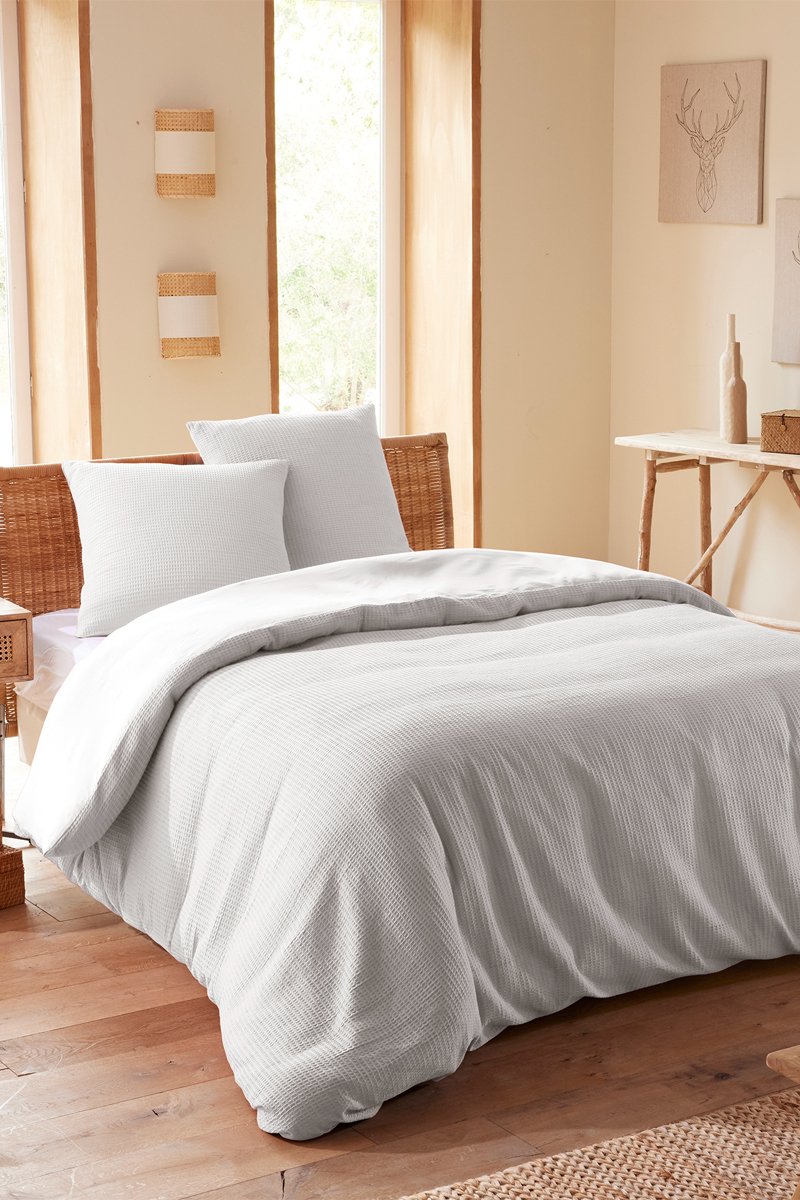 Juego de nórdico de algodón nido de abeja 57 hilos/cm² - Perla