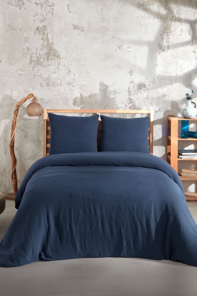 Juego de nórdico de gasa de algodón Mima - Azul marino