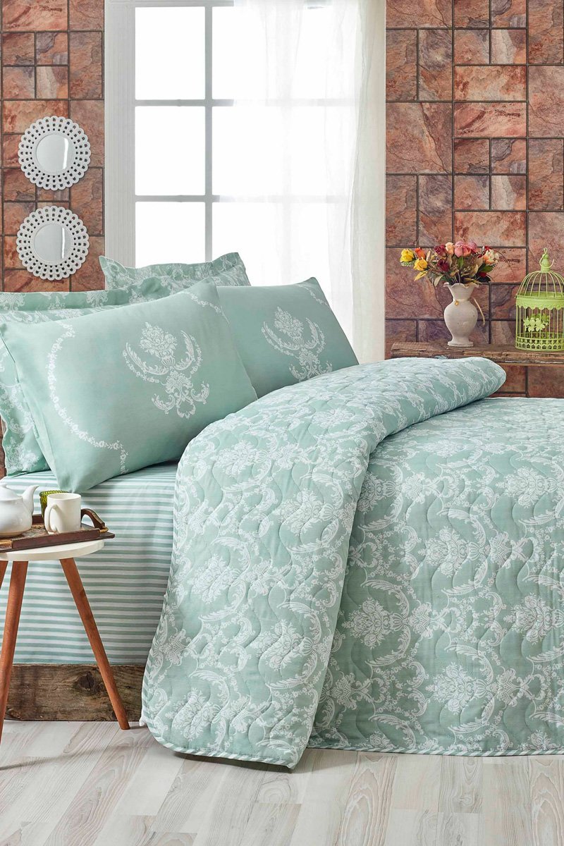 Juego de colcha de algodón 48 hilos/cm² Pure - Verde agua