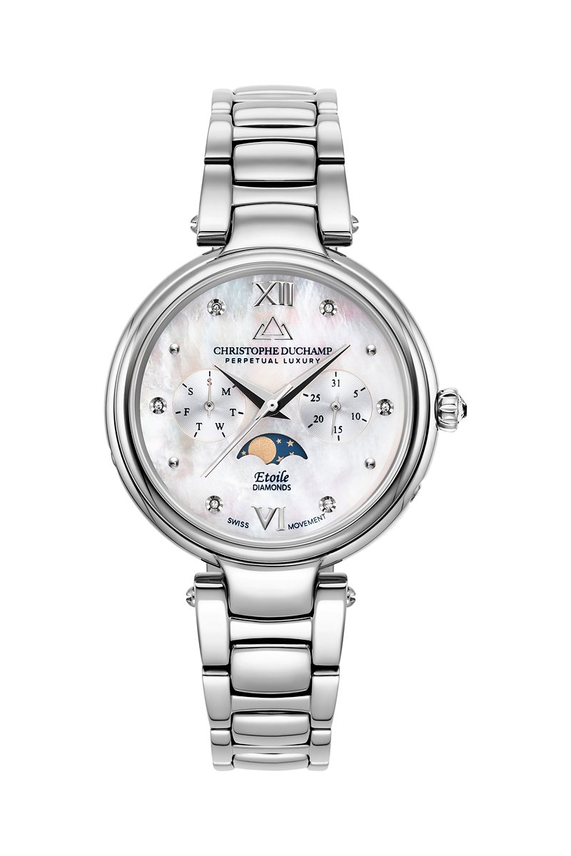 Reloj de cuarzo de acero y diamantes Etoile - Indicador de fase lunar