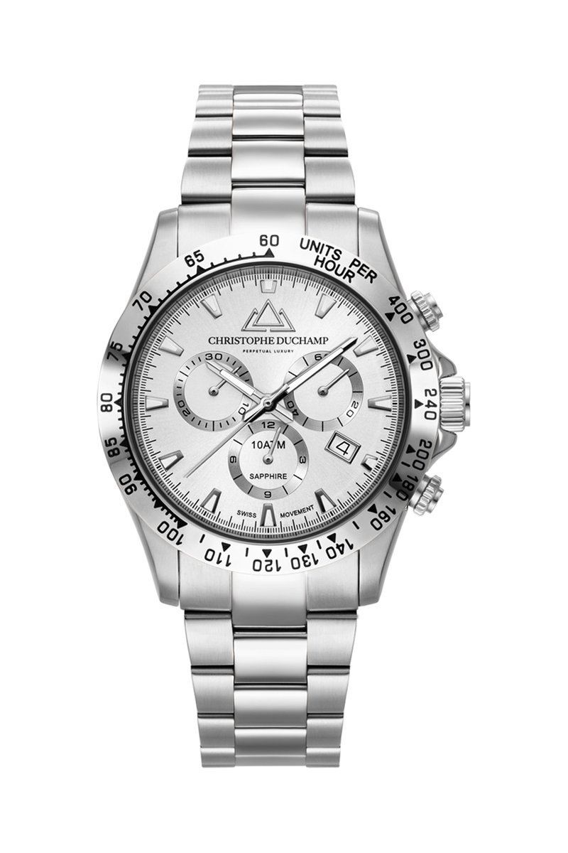 Reloj de cuarzo de acero Grand Mont - Taquímetro y cronógrafo - Plateado