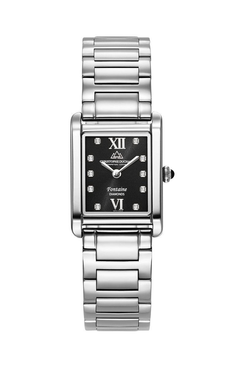 Reloj de cuarzo de acero y diamantes Fontaine