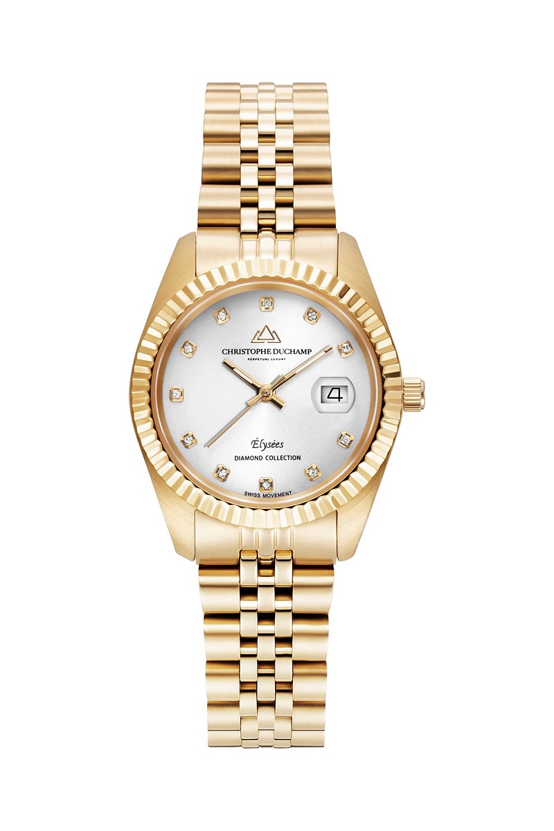 Reloj de cuarzo de acero y diamantes Elysées - Dorado