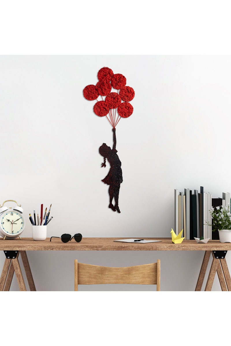 Adorno mural «Niña con globo» de Banksy - 100 x 34 cm - Negro y rojo