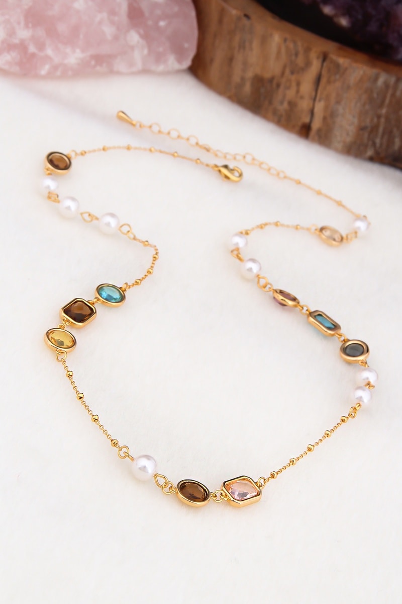 Collar con 10 circones y 9 perlas de imitación.
