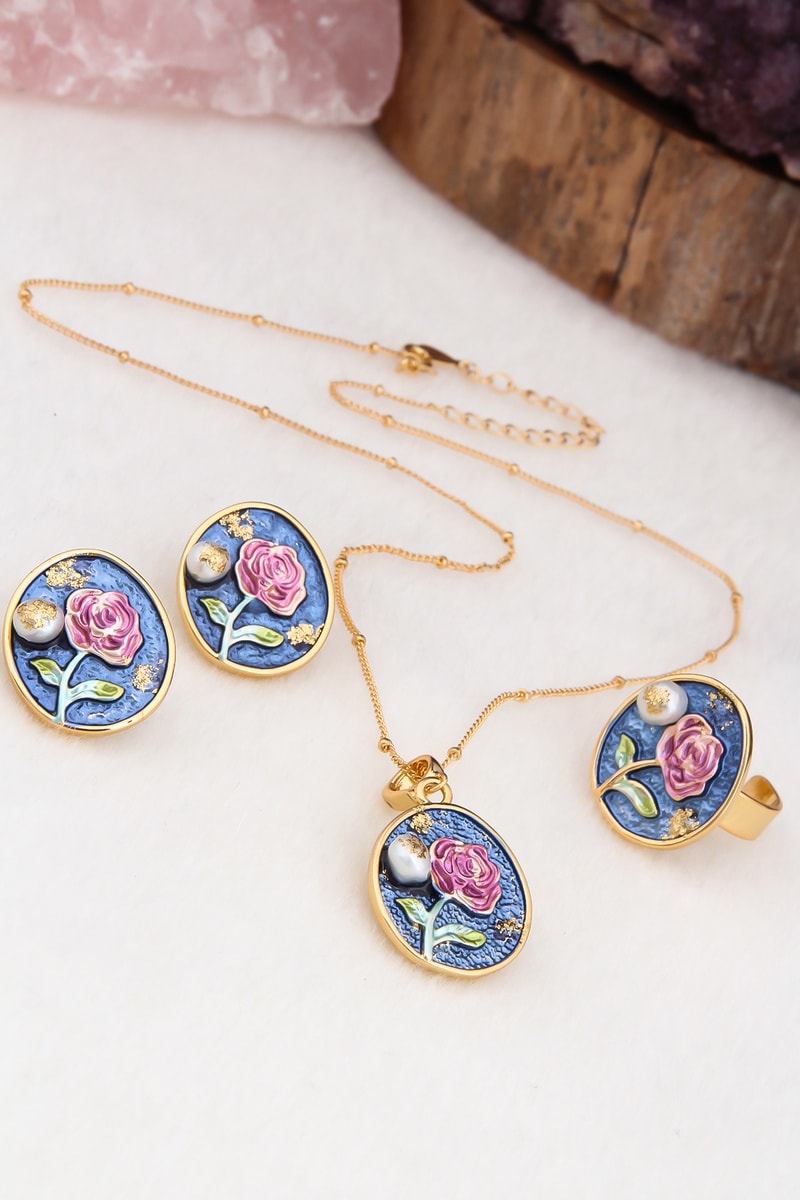 Color: dorado, azul marino, rosa y blanco