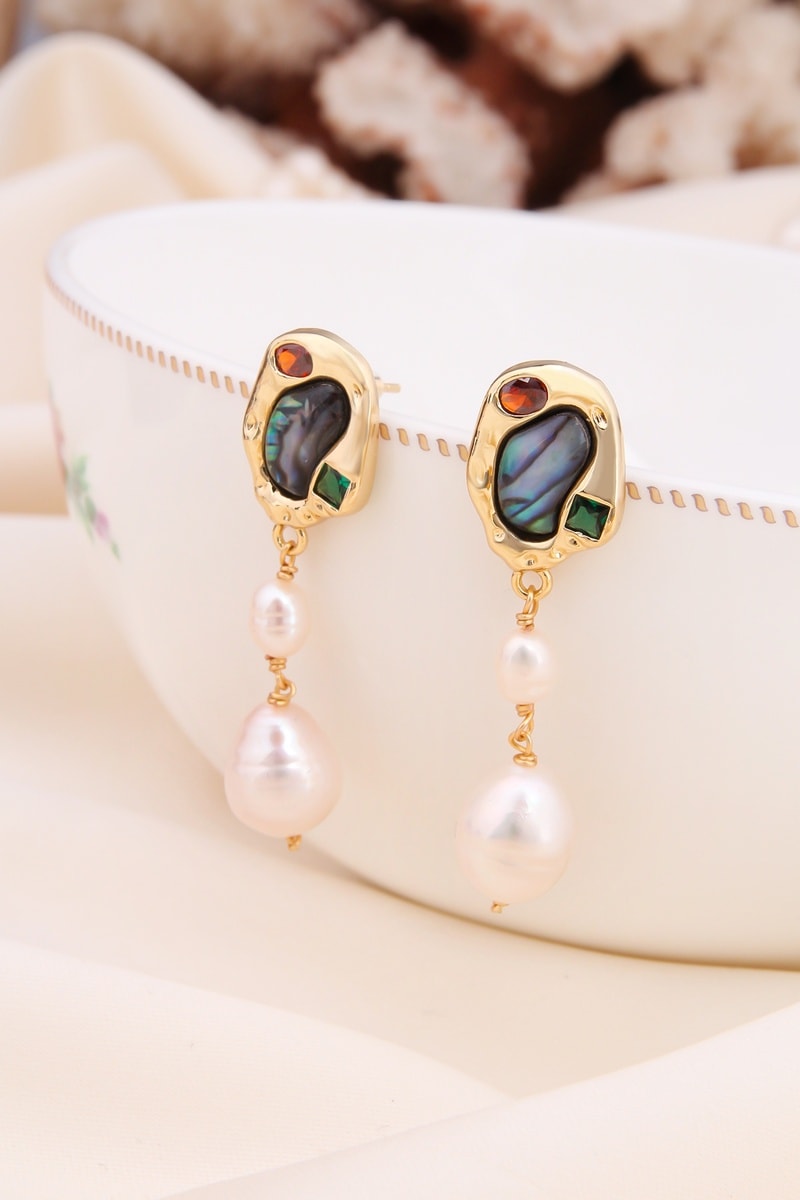 Pendientes con nácar, perlas de imitación y cristales.