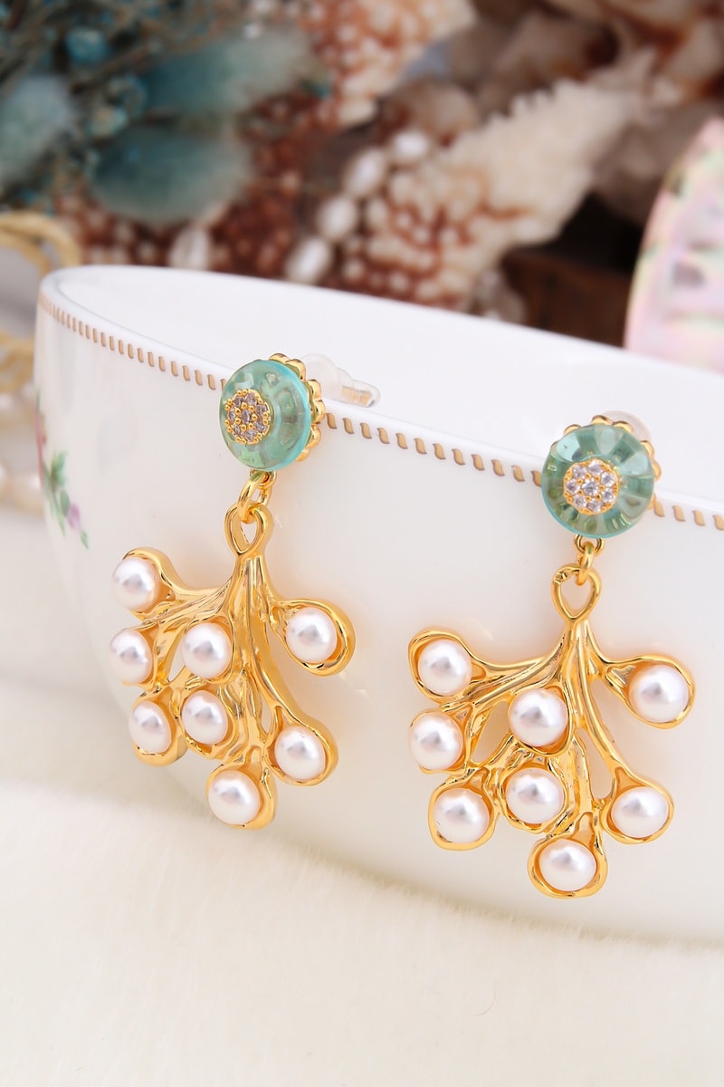 Pendientes - Dorado y blanco