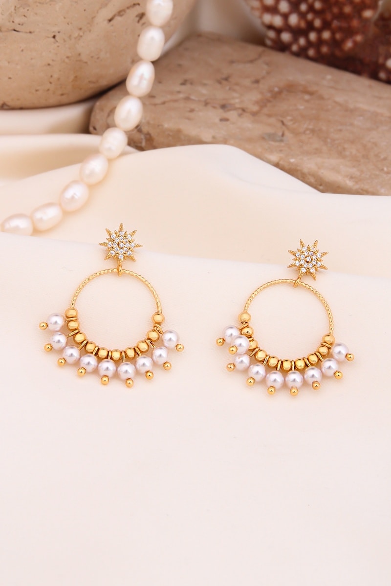 Pendientes - Dorado y blanco