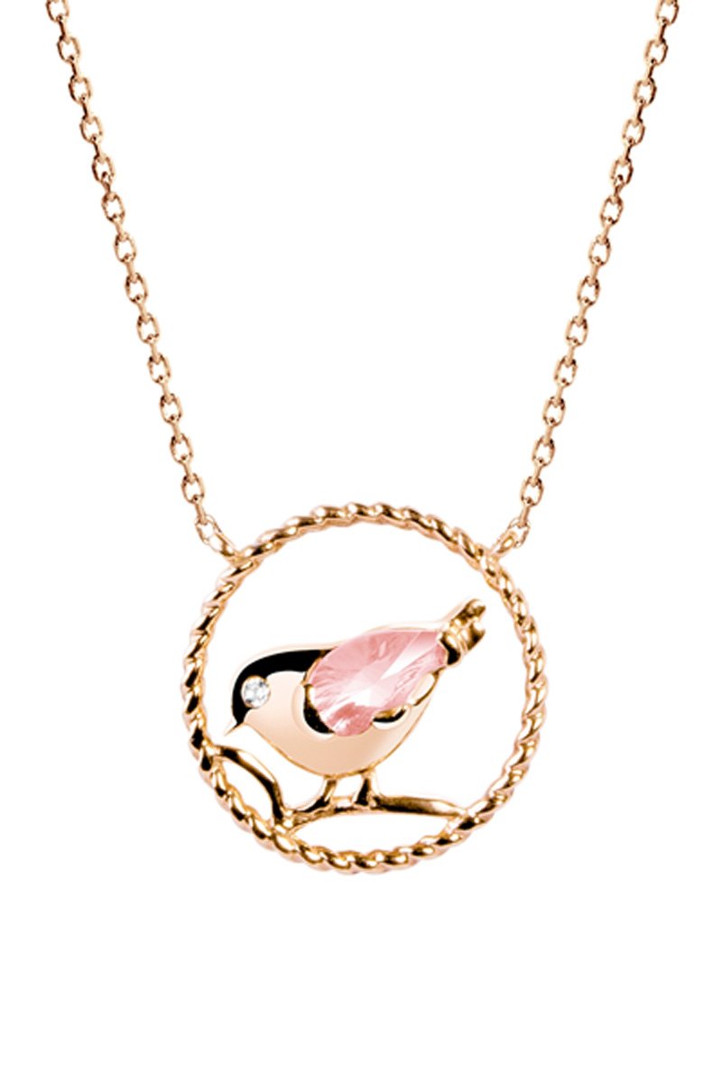 Collar - Oro rosa, diamante y cuarzo rosa