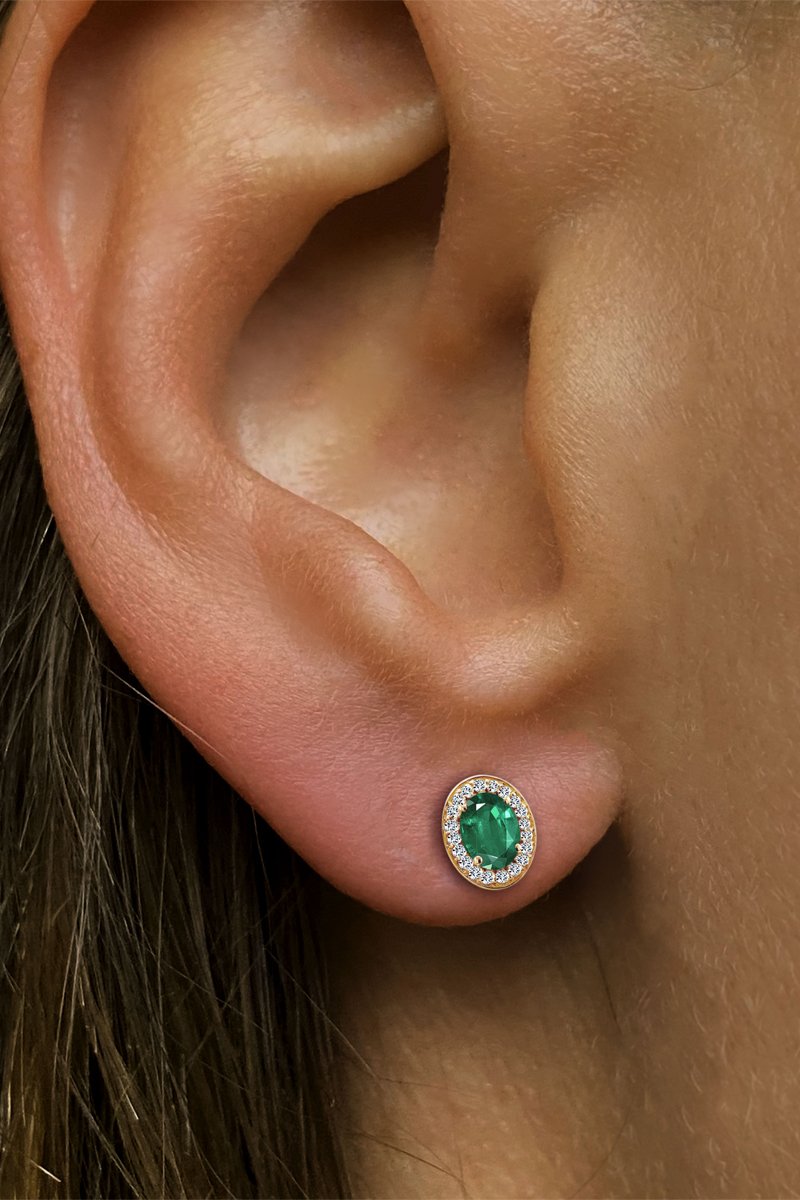 Dormilonas de oro amarillo con topacios y una esmeralda.