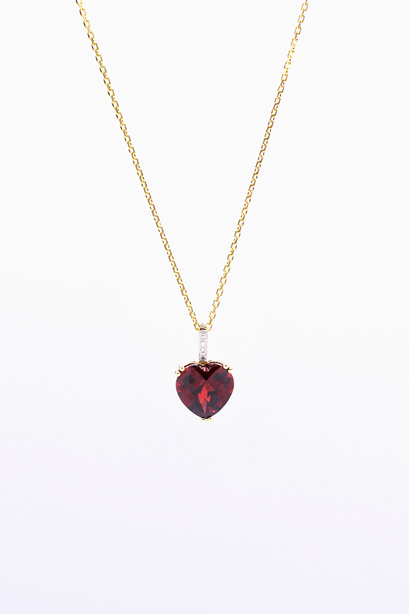 Colgante de oro amarillo con 4 diamantes y un granate.