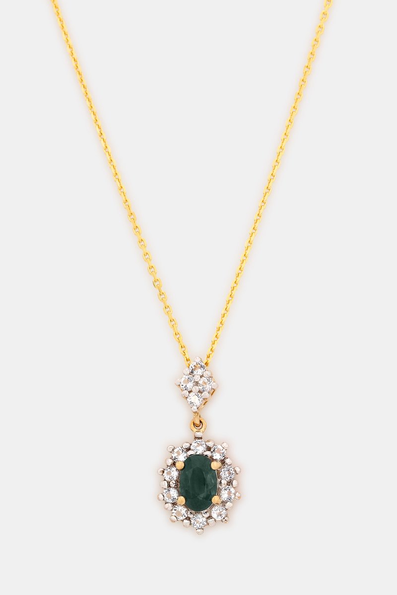 Colgante de oro amarillo con 14 topacios y un zafiro.