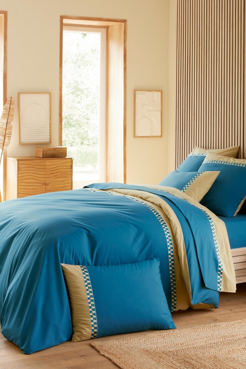 Funda nórdica reversible de algodón peinado 80 hilos/cm² Lino - Azul cobalto