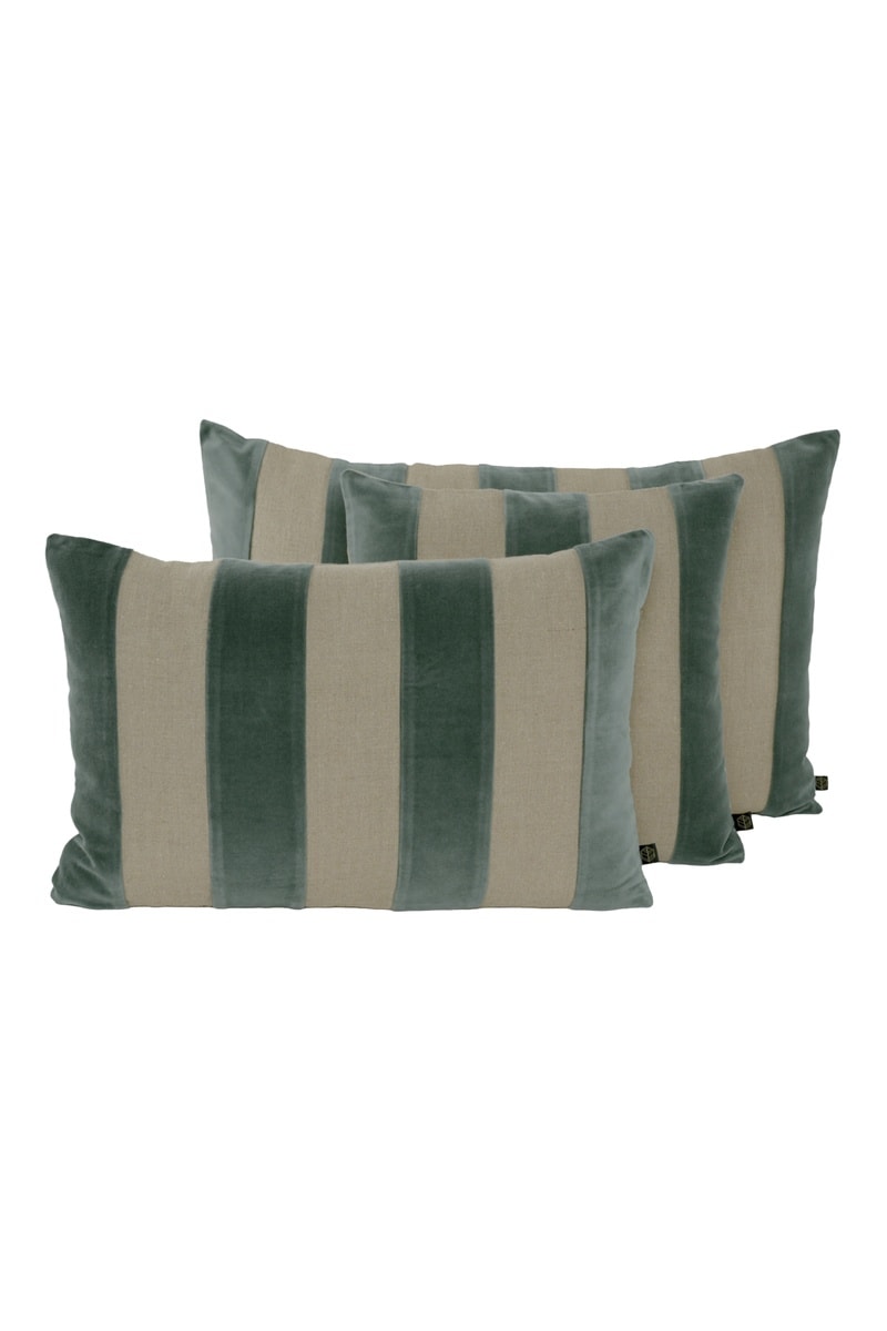 Funda de cojín de lino y terciopelo Brisbane - Verde oscuro y beige - 50 x 80 cm
