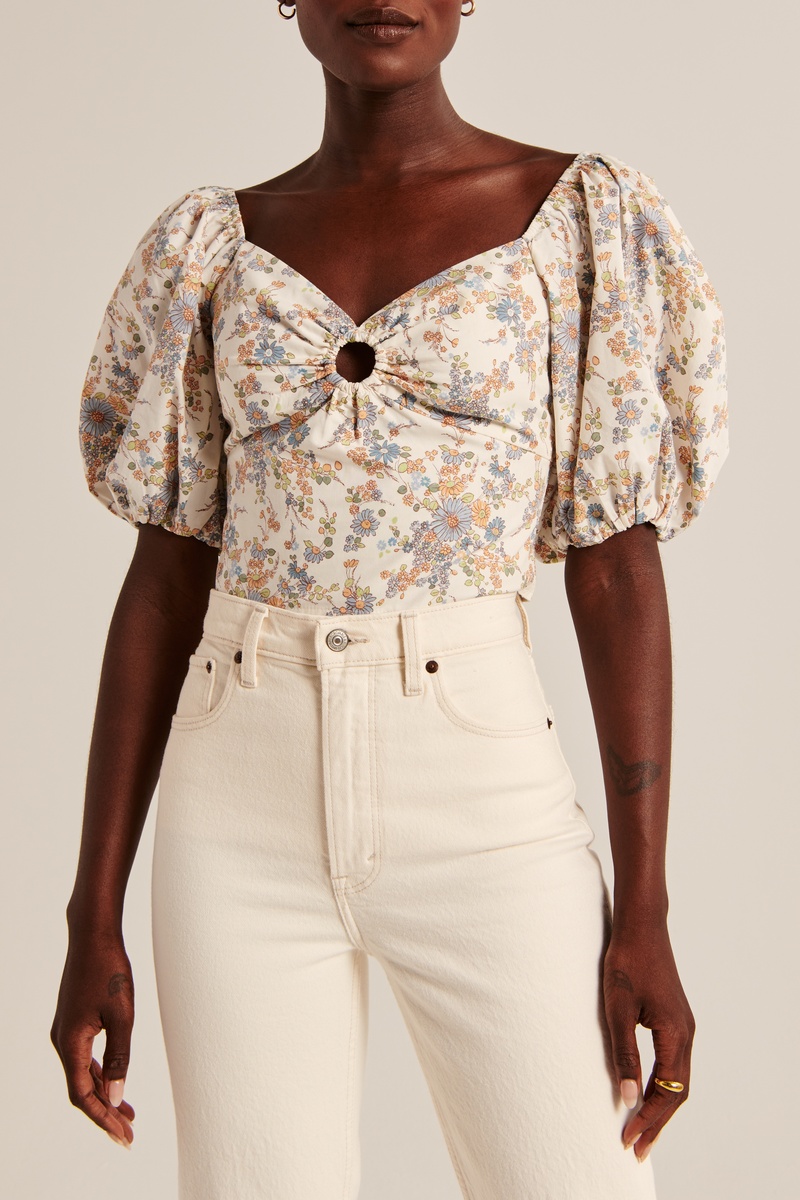 Crop top de manga corta abullonada elástica.