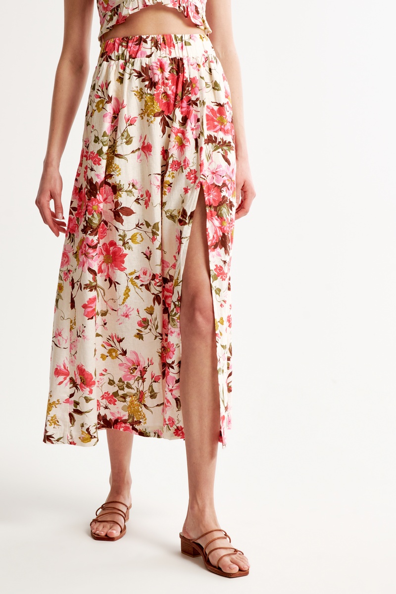 Falda larga de lino mezclado.
